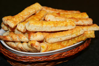 Aluatul obtinut il dam la rece pentru 15 minute, apoi il impartim in 2 si intindem 2 foi; fiecare foaie o taiem dreptunghiuri sau diferite forme. Dupa ce am taiat dreptunghiurile, le ungem cu galbenus de ou ( cu ajutorul unei pensule de silicon ) si apoi radem cascaval ; le asezam in tava unsa cu ulei si tapetata cu hartie de copt si dam la cuptor pana se rumenesc.