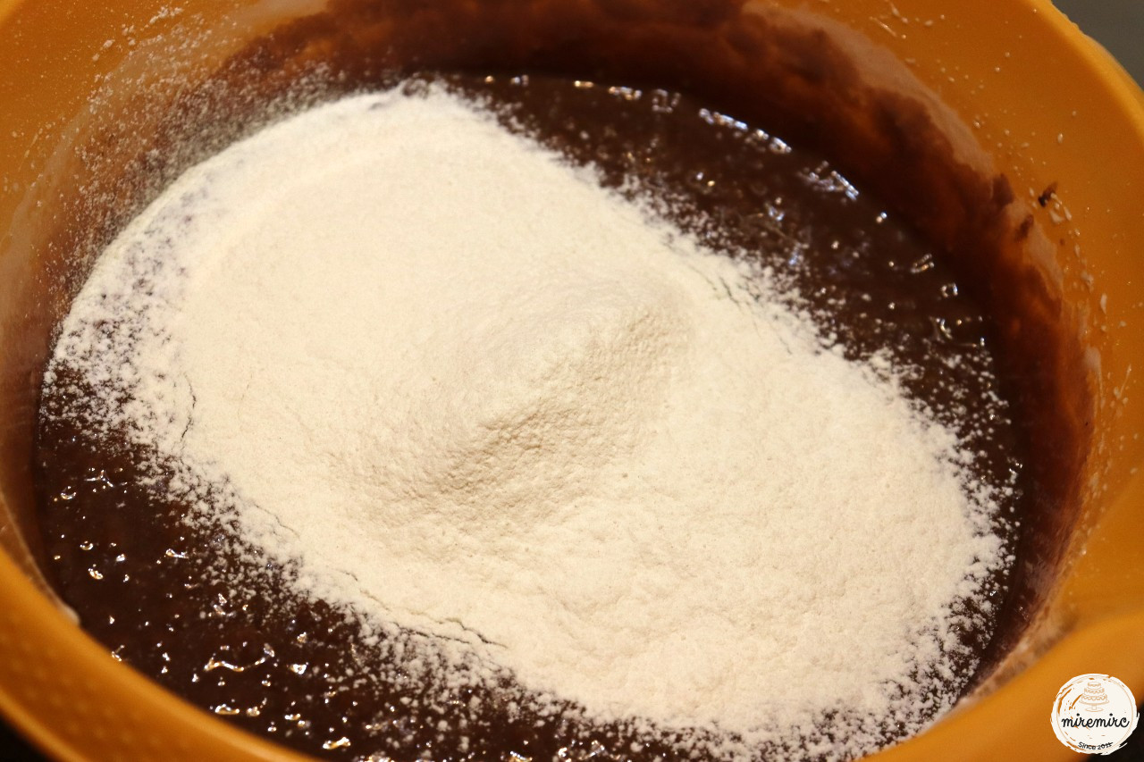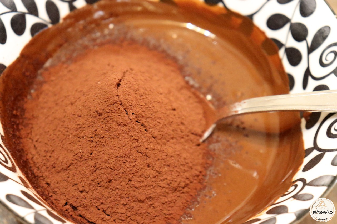 Brownies : topim ciocolata neagra si peste ea adaugam pudra de cacao. Amestecam bine si lasam deoparte. Intr-o cratita topim untul cateva minute pana cand incepe sa miroase a nuci prajite , dara fara sa-l ardem. Untul topit il turnam peste ciocolata de mai sus si-l lasam asa timp de 3 minute, dupa care amestecam pentru omogenizare.