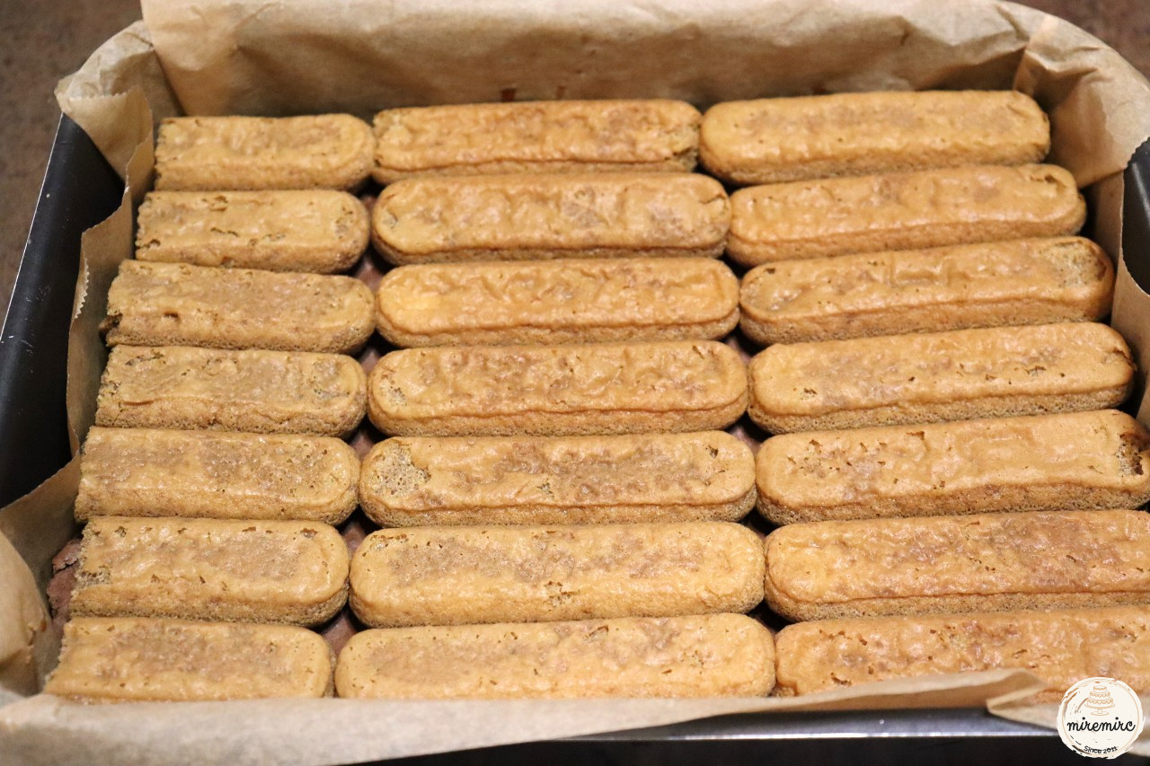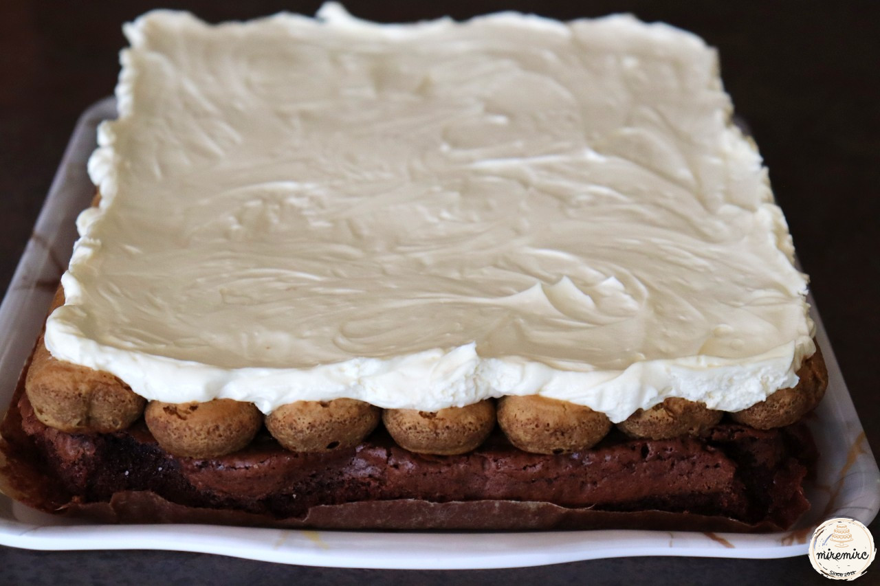 Piscoturile le trecem prin espresso neandulcit racit si le asezam peste brownies rece.