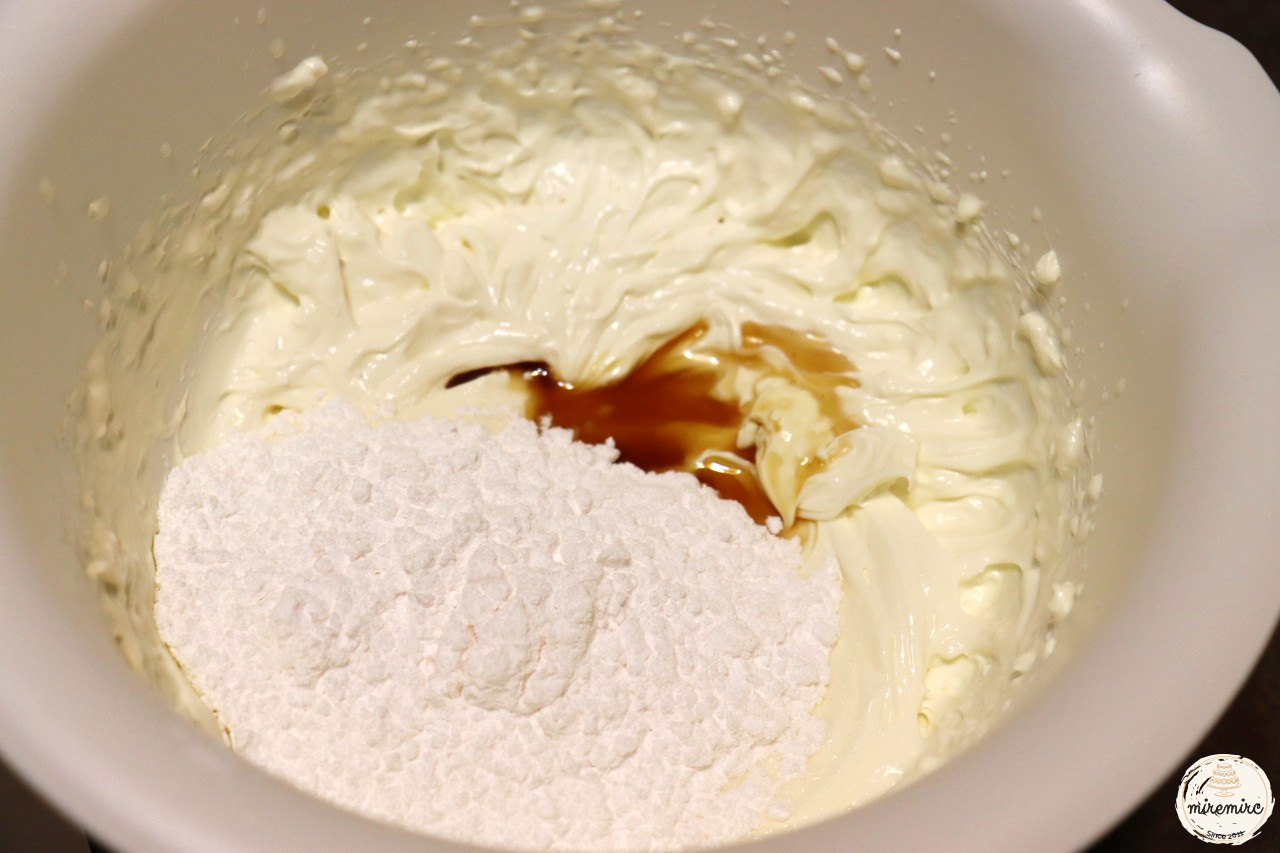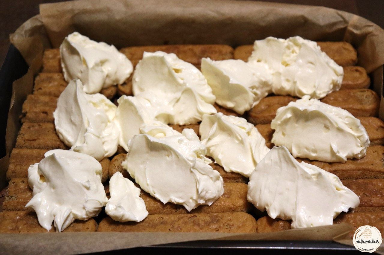 Crema : intr-un bol mixam putin mascarponele. Peste el adaugam smantana pentru frisca,mixam putin apoi adaugam esenta de vanilie si zaharul pudra .Mixam pana obtinem o crema pufoasa. Crema o intindem peste piscoturi.